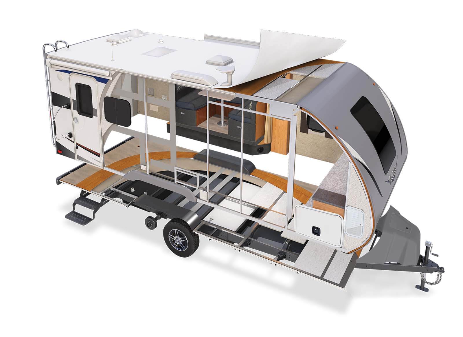 Interiors are constructed using Lite-Ply which Lance imports from Europe. Lite-Ply does cost more, but is both lighter and stronger than other wood products. For these same reasons, this same wood is also the preferred material used by many corporate jet manufacturers. Incorporating both tongue and groove and dovetail construction, provides durability and beauty.