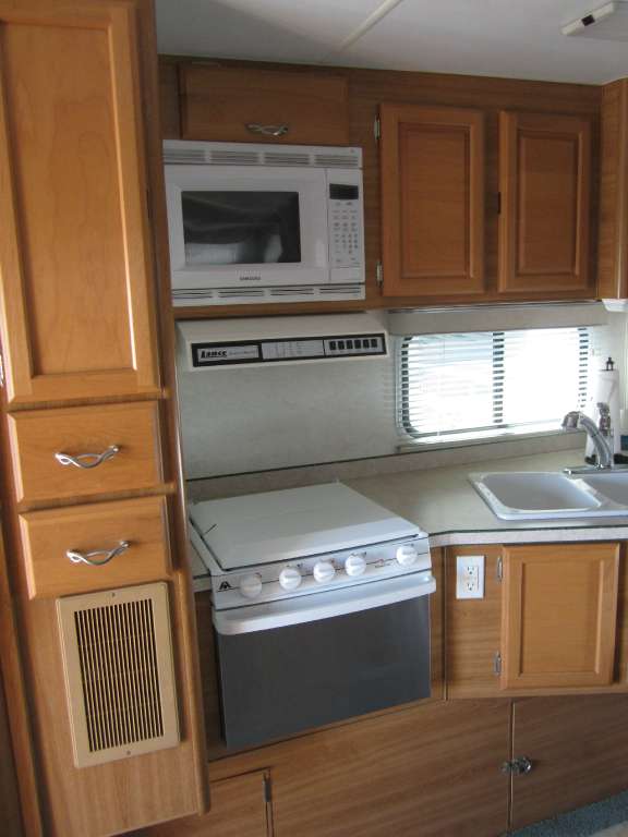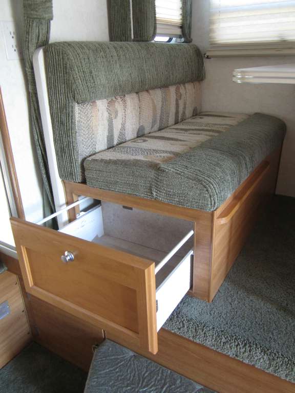 Roll out storage drawer under Dinette, slide cover & side awning,rear awning, Flat screen T.V & Stereo