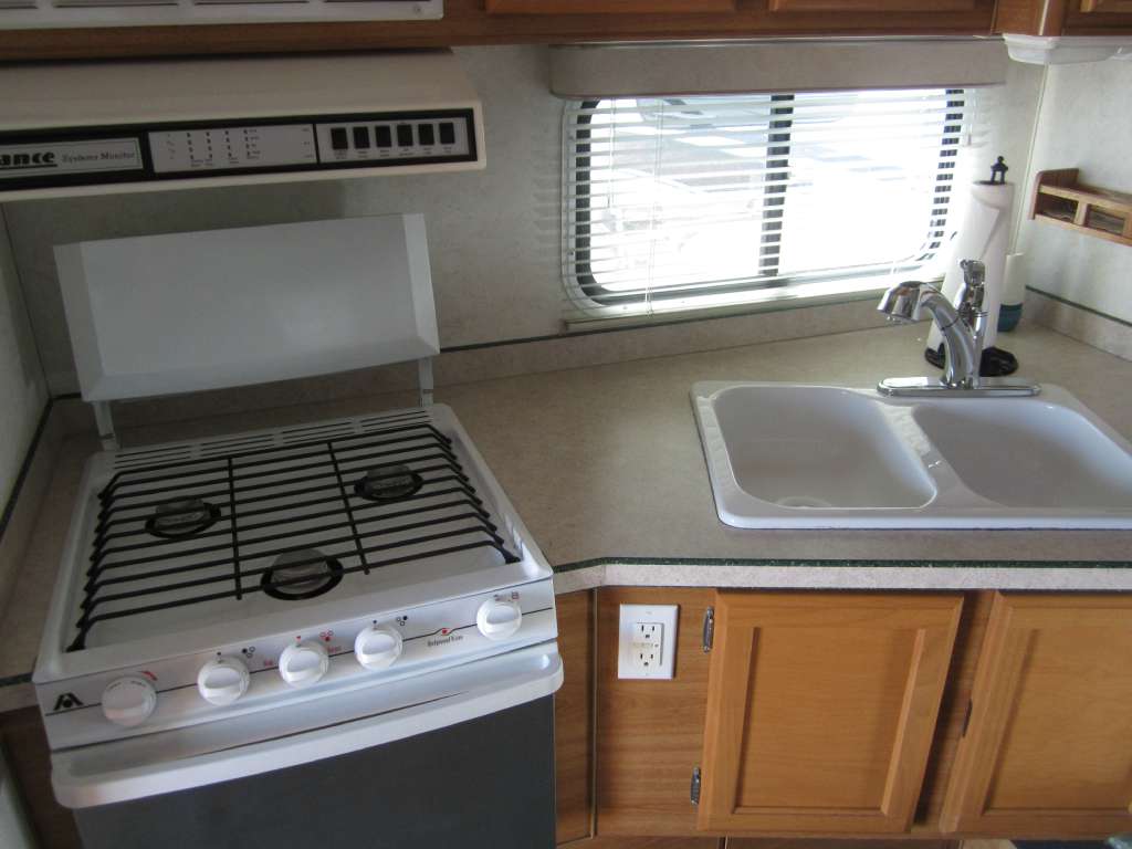 It has generator, Day/Night shades , Microwave , 3-Burner output range w oven